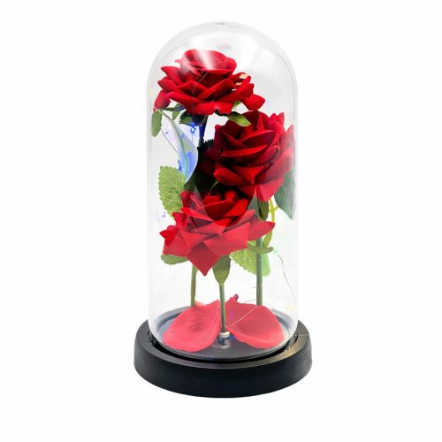 A LED-es bársony rózsák üvegbúrában nem csupán egy dekoráció, hanem egy romantikus gesztus, amely hosszú időn át örömet szerez.