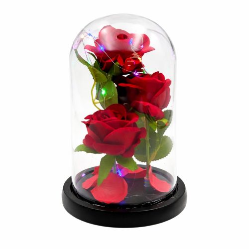 Bársony Rózsák Üvegbúrában 14x22cm ledes