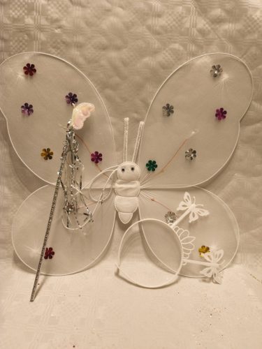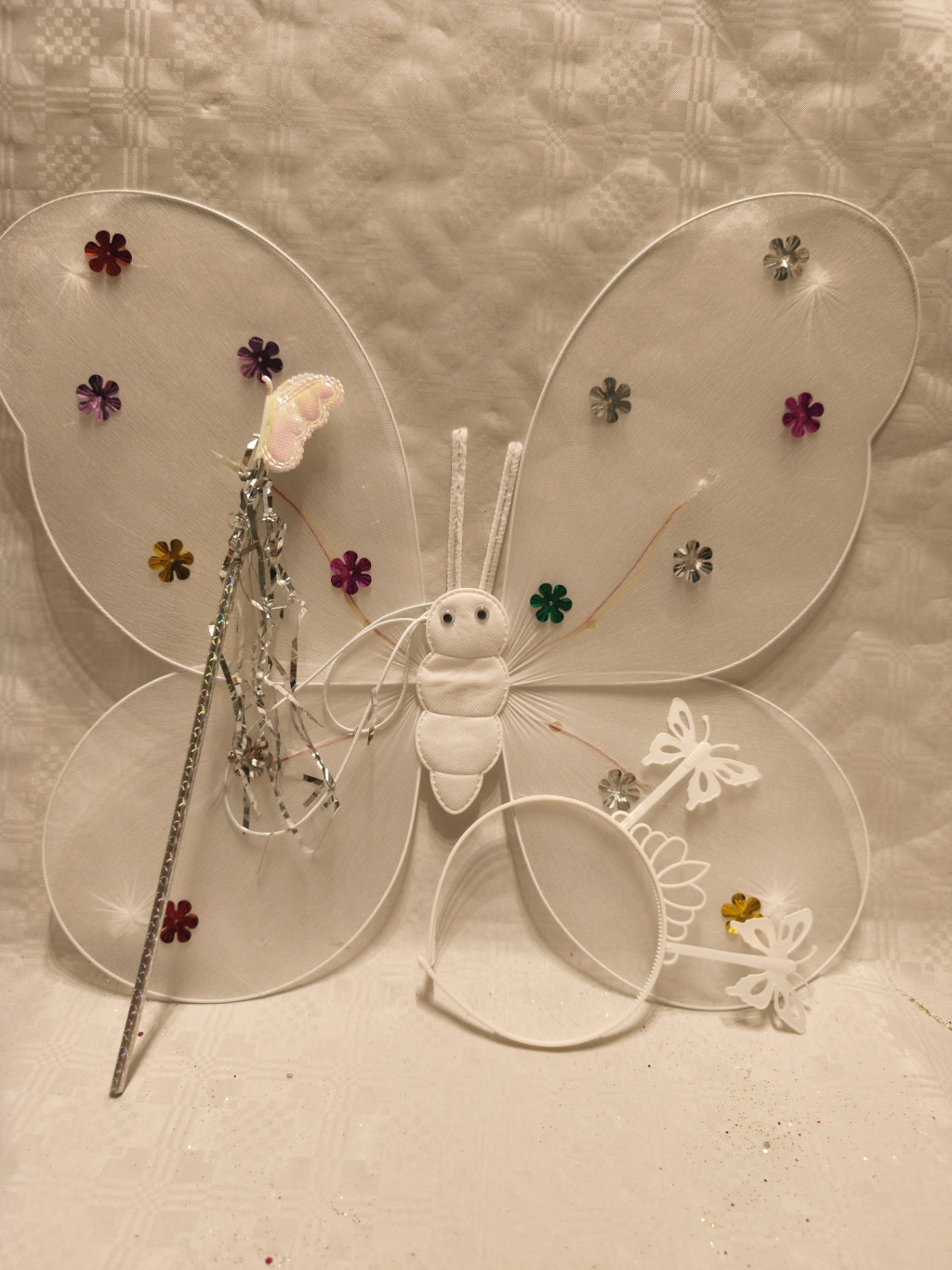 Mesés tündér szárny szett, amely tartalmaz csillogó szárnyat, varázspálcát és fejpántot. Tökéletes választás farsangra, jelmezbálra és tündéres szerepjátékhoz.