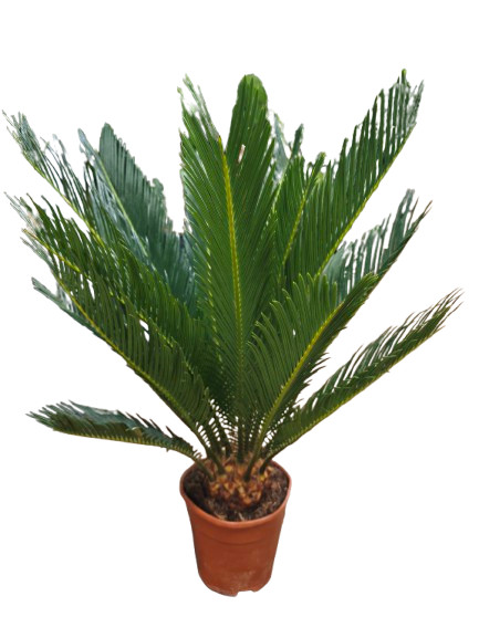 A Cycas pálma (Cycas revoluta) egy rendkívül látványos, pálmaszerű megjelenésű dísznövény, amely exkluzív és rendezett hatást kölcsönöz bármely térnek. Bár nem valódi pálma, robusztus levelei és szabályos formája miatt az egyik legnépszerűbb „pálmahatású” szobanövény.