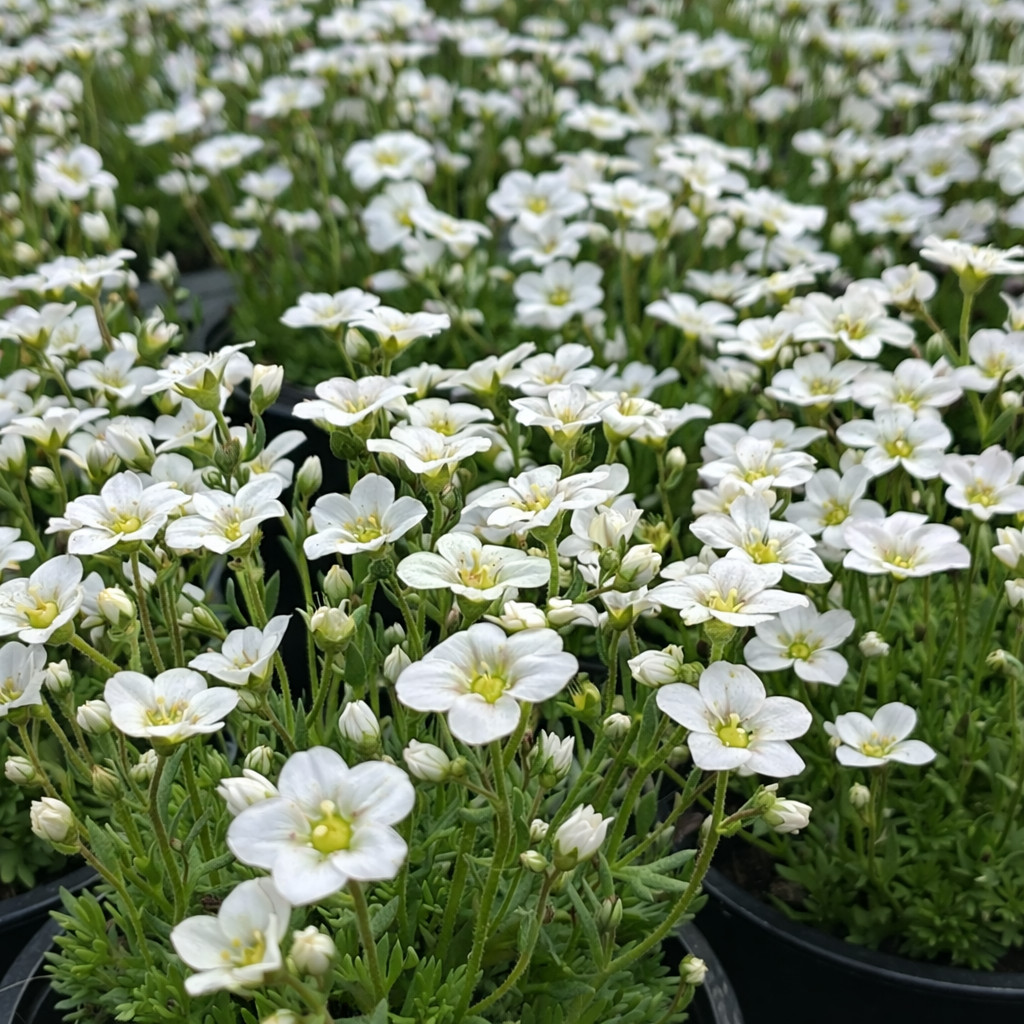 A kőtörőfű (Saxifraga) egy rendkívül sokoldalú és strapabíró évelő növény, amely természetes élőhelyén sziklás területeken is megél, innen ered neve is. Kompakt, párnaszerű növekedésének köszönhetően kiváló választás sziklakertekbe, kőfalak réseibe, járdaszegélyek mellé vagy akár balkonládákba.