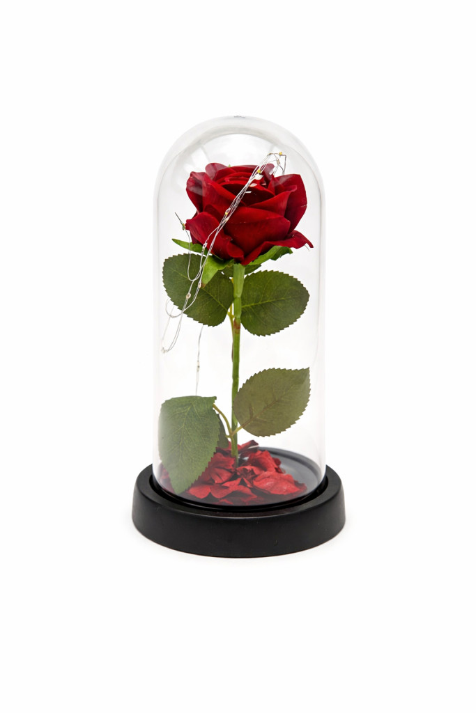 Az átlátszó üvegbúra megvédi a virágot a portól és a sérülésektől, miközben kiemeli természetes szépségét. A beépített LED világítás meleg, meghitt fényt biztosít, amely varázslatos hangulatot teremt nappaliban, hálószobában vagy irodában.