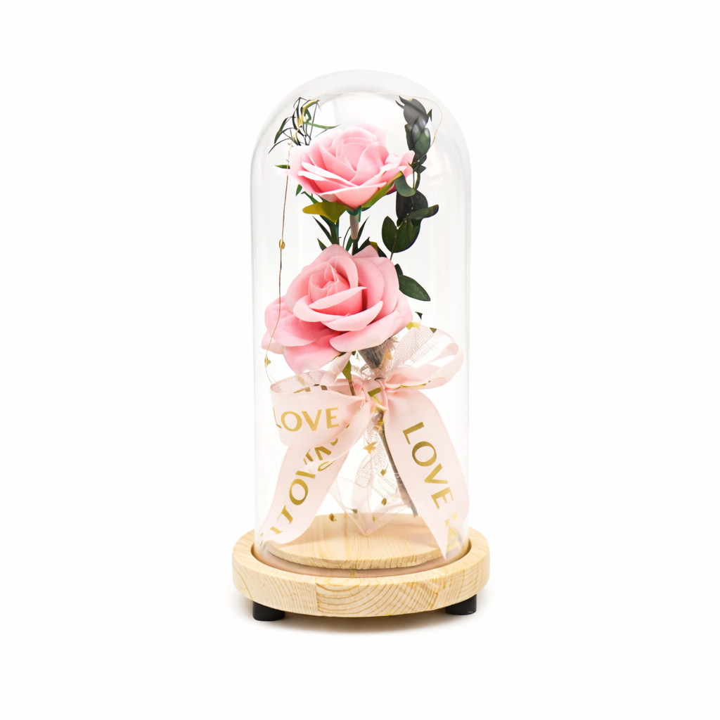 A Rózsaszín rózsa üvegbúrában LED világítással egy igazán finom és romantikus dekoráció, amely a szeretet, gyengédség és figyelmesség jelképe. A gondosan kidolgozott, élethű megjelenésű rózsa elegáns megjelenést kölcsönöz bármely helyiségnek.