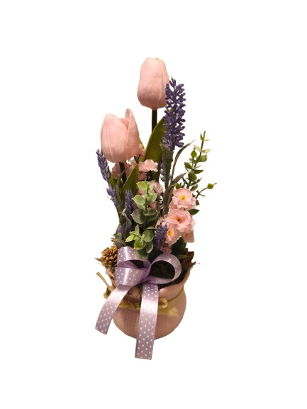 Tavaszi asztaldísz rózsaszín-lila