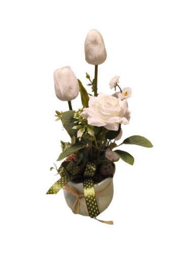 Ha egy igazán tavaszias, ünnepi hangulatú asztali díszt keresel, amely egyszerre friss, elegáns és időtálló, ez a dekoráció tökéletes választás.