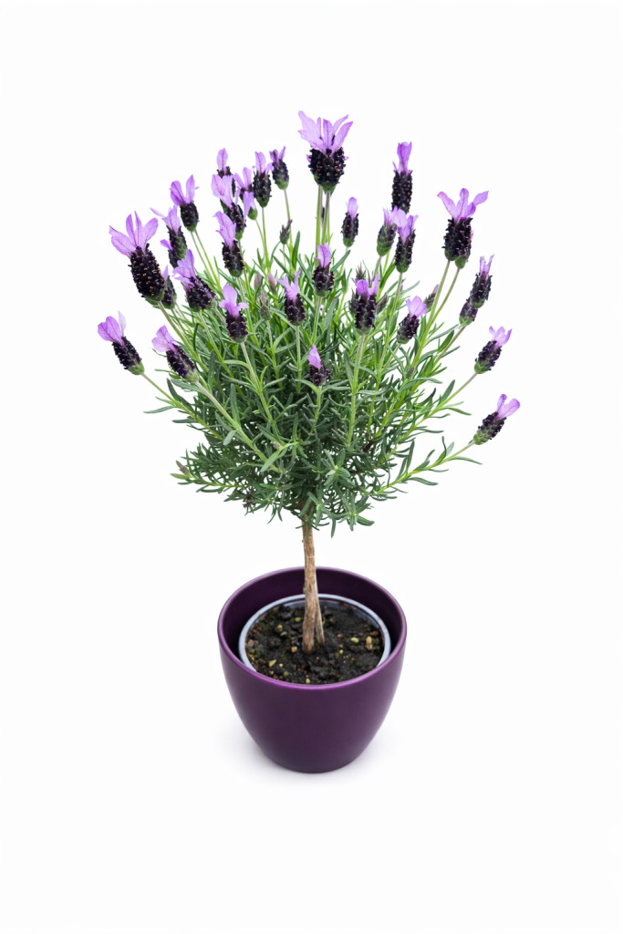 Törzses francia levendula különleges, dekoratív megjelenéssel és jellegzetes „pillangós” virágokkal. Elegáns, illatos növény, amely tökéletes választás teraszra, balkonra vagy bejárathoz.