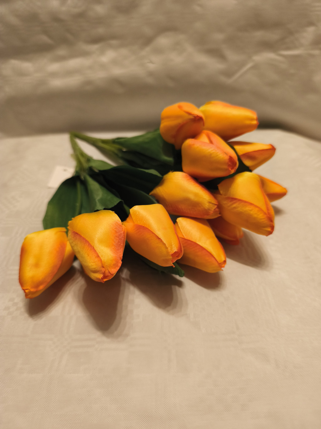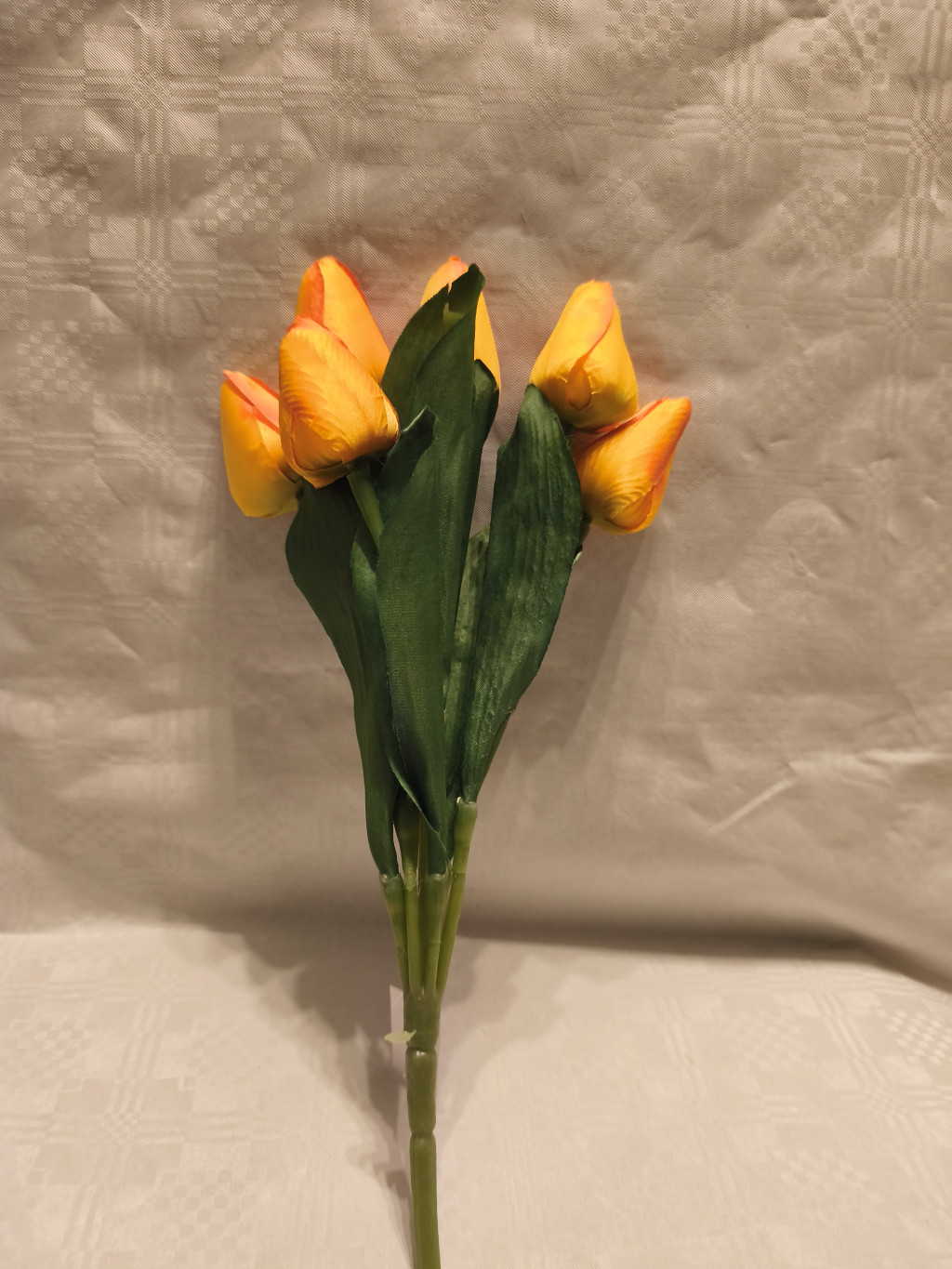 Ez a gyönyörű mű tulipán csokor a természetes tulipánok minden báját visszaadja, miközben soha nem hervad el. Prémium minőségű textilből és rugalmas szárból készült, így megtévesztően élethű megjelenést biztosít. Tökéletes választás mindazoknak, akik szeretnék otthonukat, irodájukat vagy rendezvényüket virágokkal feldobni anélkül, hogy gondozással kellene bajlódniuk.