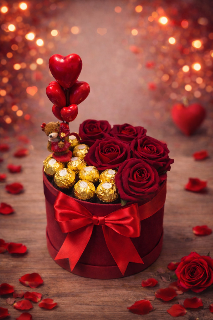 Ez a luxus ajándékbox ideális választás Valentin-napra, évfordulóra, eljegyzésre, születésnapra vagy akár exkluzív meglepetésként azok számára, akiket igazán különlegesnek tartunk. A bársonyos felület, a harmonikus színek és az aprólékosan megkomponált elrendezés prémium megjelenést kölcsönöz, amely azonnal lenyűgözi a megajándékozottat.