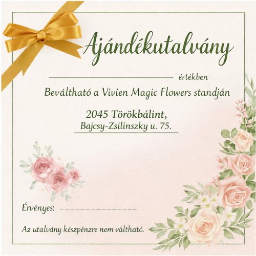 A Vivien Magic Flowers ajándékutalvány ideális ajándék minden alkalomra — elegáns, rugalmas és személyre szabható.